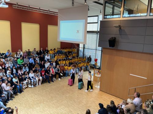 Auch in diesem Schuljahr hatten wir wieder Besuch aus Malestroit - und die Franzosen haben bei uns auch viel erlebt und die Region erkundet. Vom Butterstampfen bei den Vogtsbauernhöfen, über das ZKM in Karlsruhe, zum Schloss nach Ludwigsburg, auf den Montescherbelino und zum Flughafen Stuttgart.