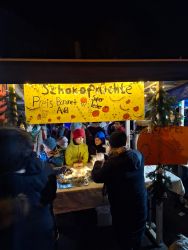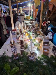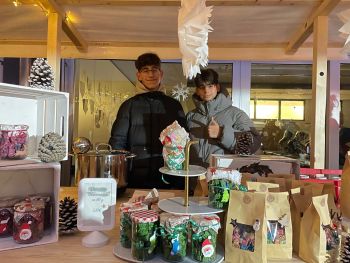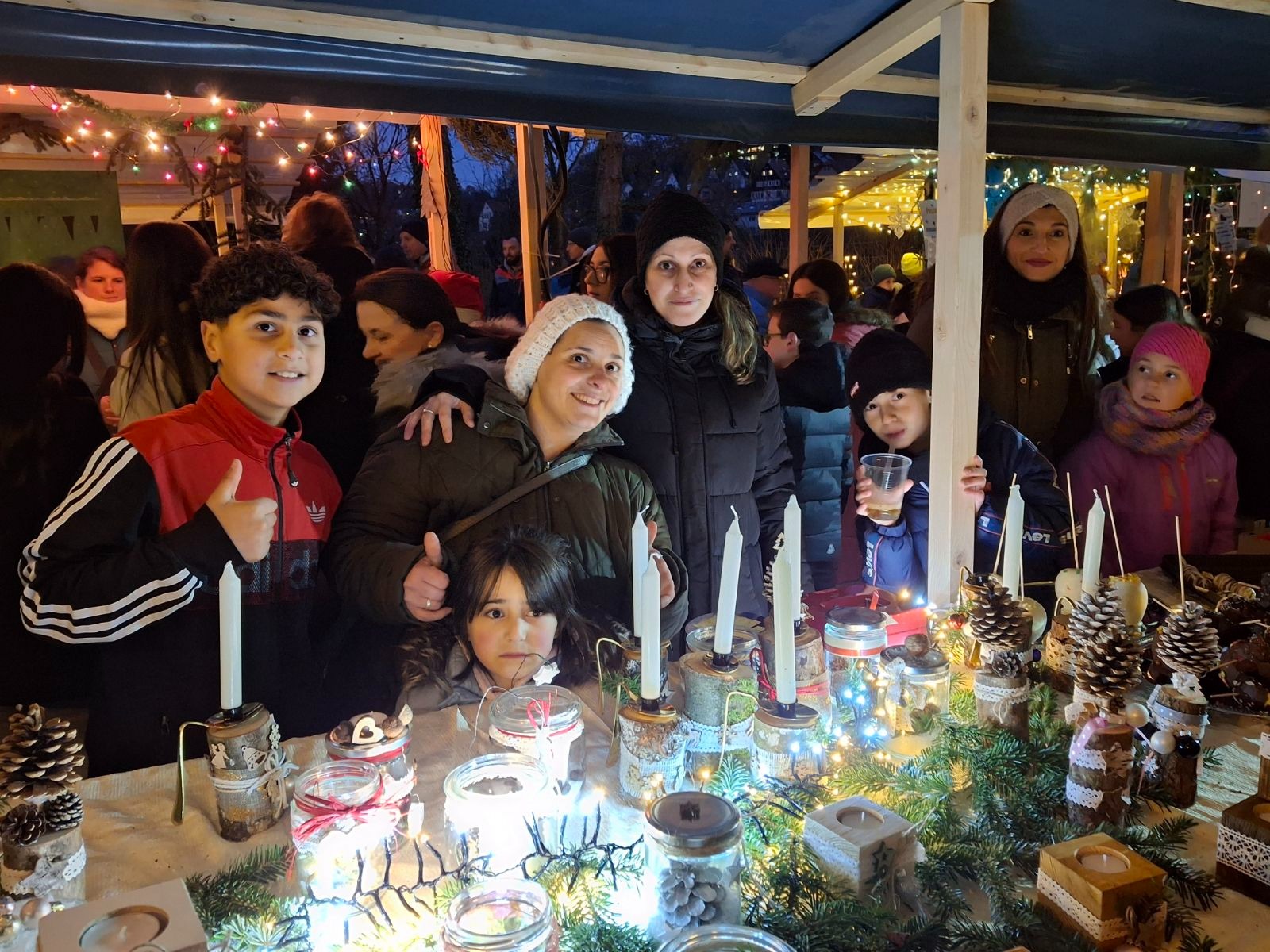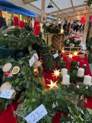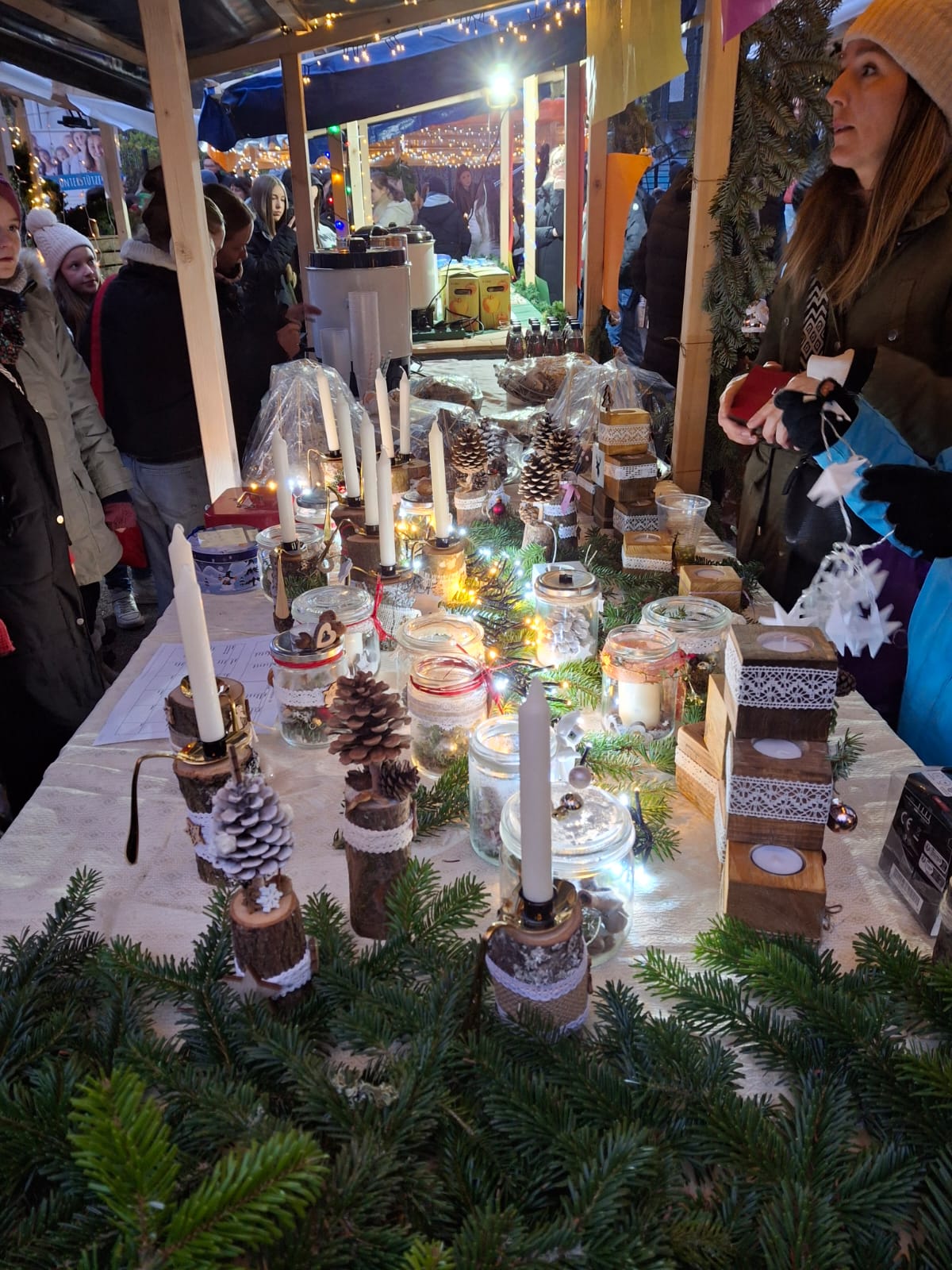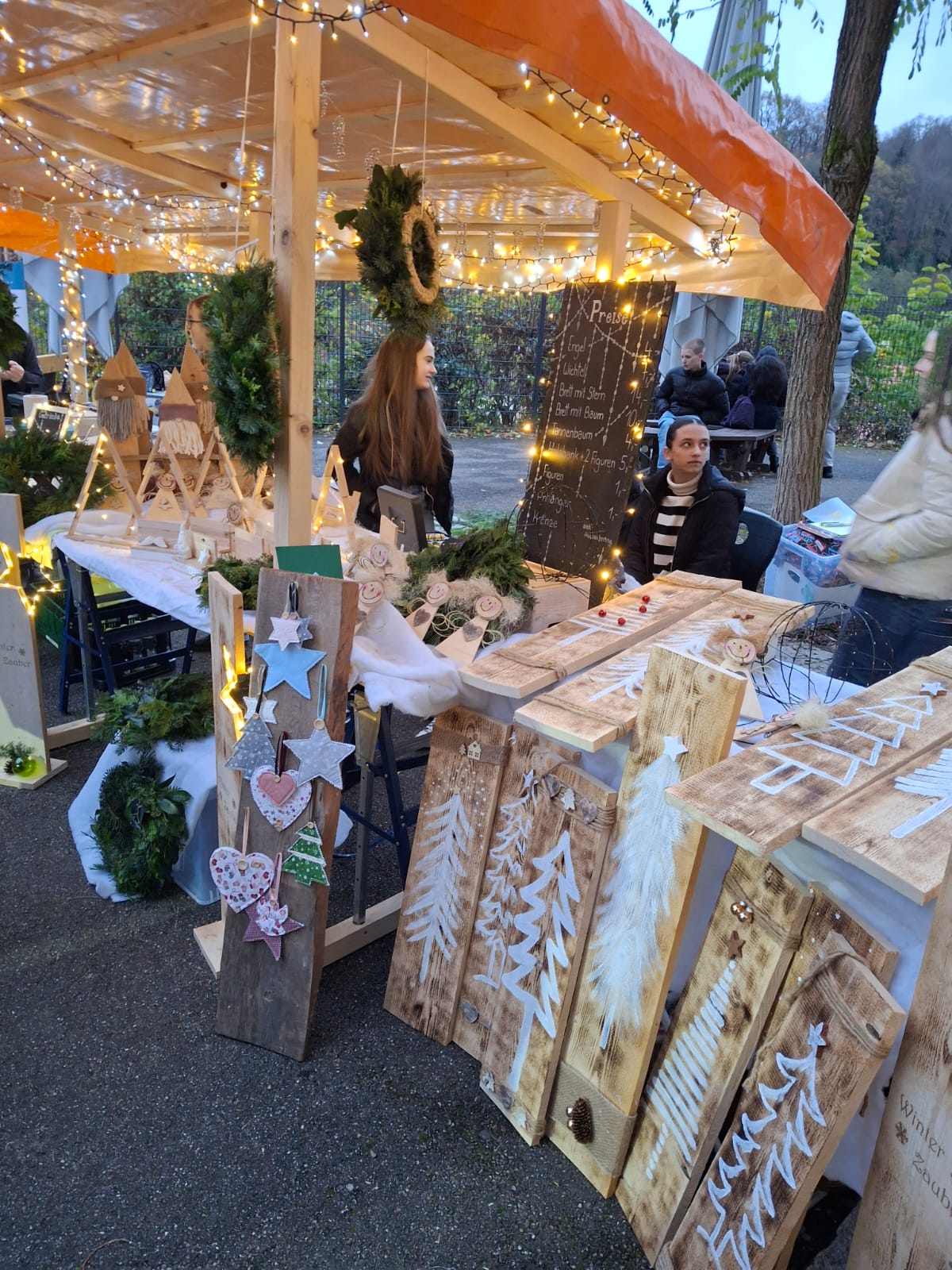 Am Donnerstag war es dann endlich soweit. Die Techniklehrkräfte begannen bereits in der ersten Stunde mit ihren Klassen damit, die schuleigenen Verkaufsstände aufzubauen. In wenigen Stunden wurde der leere Pausenhof tatkräftig in ein Adventsdorf mit vielen Holzhütten umgebaut. Und als die ersten Eltern dazustießen, wurden Lichterketten, weihnachtliche Dekoration und Tannenzweige angebracht, sodass die Stände mit viel Liebe zum Detail wie auf dem Weihnachtsmarkt aussahen.