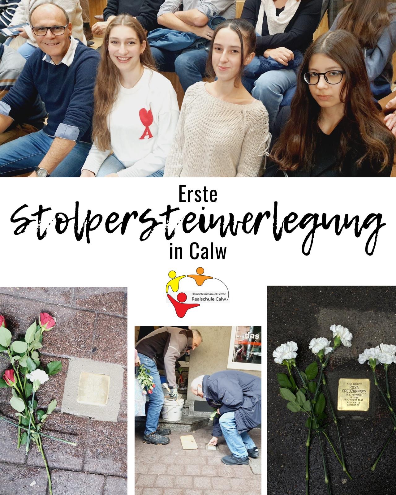 Am Sonntag, den 09.11.25, fand in Calw ein ganz besonderer und bewegender Moment statt: Die ersten beiden Stolpersteine der Stadt wurden verlegt – zur Erinnerung an Rosa Creuzberger und Hermann Schürle, die Opfer des Nationalsozialismus wurden. Im Rahmen der Gedenkfeier wirkten auch Schülerinnen der Klasse 10b mit. Im Geschichtsunterricht hatten sie sich intensiv mit den Lebensgeschichten der beiden auseinandergesetzt und die letzten Gedanken und Erinnerungen in eigenen Texten festgehalten. Diese wurden während der Veranstaltung vorgelesen – ein Moment, der viele Zuhörer*innen tief berührte. Die Texte sowie weitere Impressionen sind auf unserer Instagram-Seite sowie HIER zu sehen.