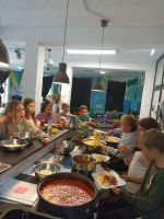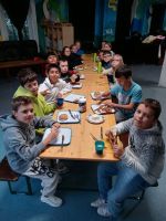 Ende September war im Calwer Jugendhaus schon morgens einiges los, denn unsere neuen fünften Klassen verbrachten dort jeweils zwei Schultage mit ihren Klassenlehrkräften und unserer Schulsozialarbeiterin Steffi Rieke. Ziel war es, das Kennenlernen und das Wir-Gefühl der neu zusammengesetzten Klassen zu stärken. Dafür wurde einiges geboten: Vom gemeinsamen Frühstück über Kooperationsspiele, die mal knifflig, mal sportlich, aber immer spaßig und auch lehrreich waren, bis hin zu Pizza und zum selbstgemachten Mittagessen - langweilig wurde es ganz sicher niemandem. Ein mit Spannung erwarteter Höhepunkt war zudem die Klassensprecherwahl, die alle Klassen in diesem Rahmen durchführten. Natürlich kamen auch Spiel, Spaß und Freizeit nicht zu kurz. Zwei tolle Team-Trainingstage gingen wie im Flug vorbei. Und auch dank dieser Tage sind unsere 5er mittlerweile schon richtig gut angekommen!