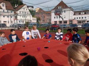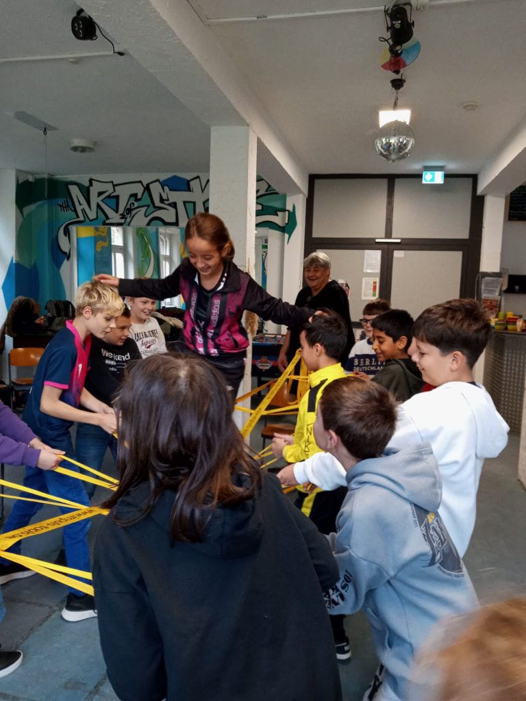 In enger Zusammenarbeit mit unserer Schulsozialarbeiterin Steffi Rieke und dem Stadtjugendreferat werden zu Beginn des fünften Schuljahres zwei Teamtrainingstage durchgeführt.
